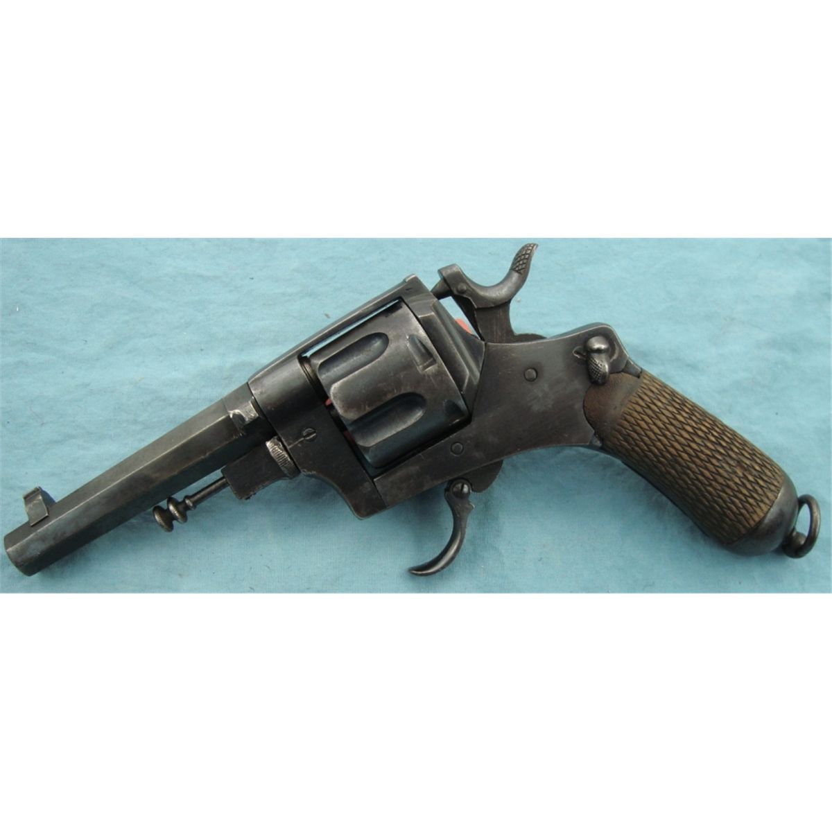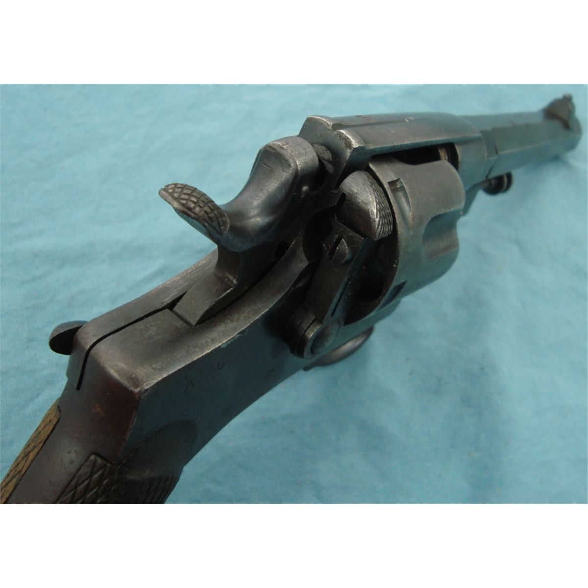 #A6; 11mm Antique. 4 7/16" oct bbl. Blue finish & walnut grips. Folding trigger & Lanyard ring. Dated 1917 on frame. In good overall condition.