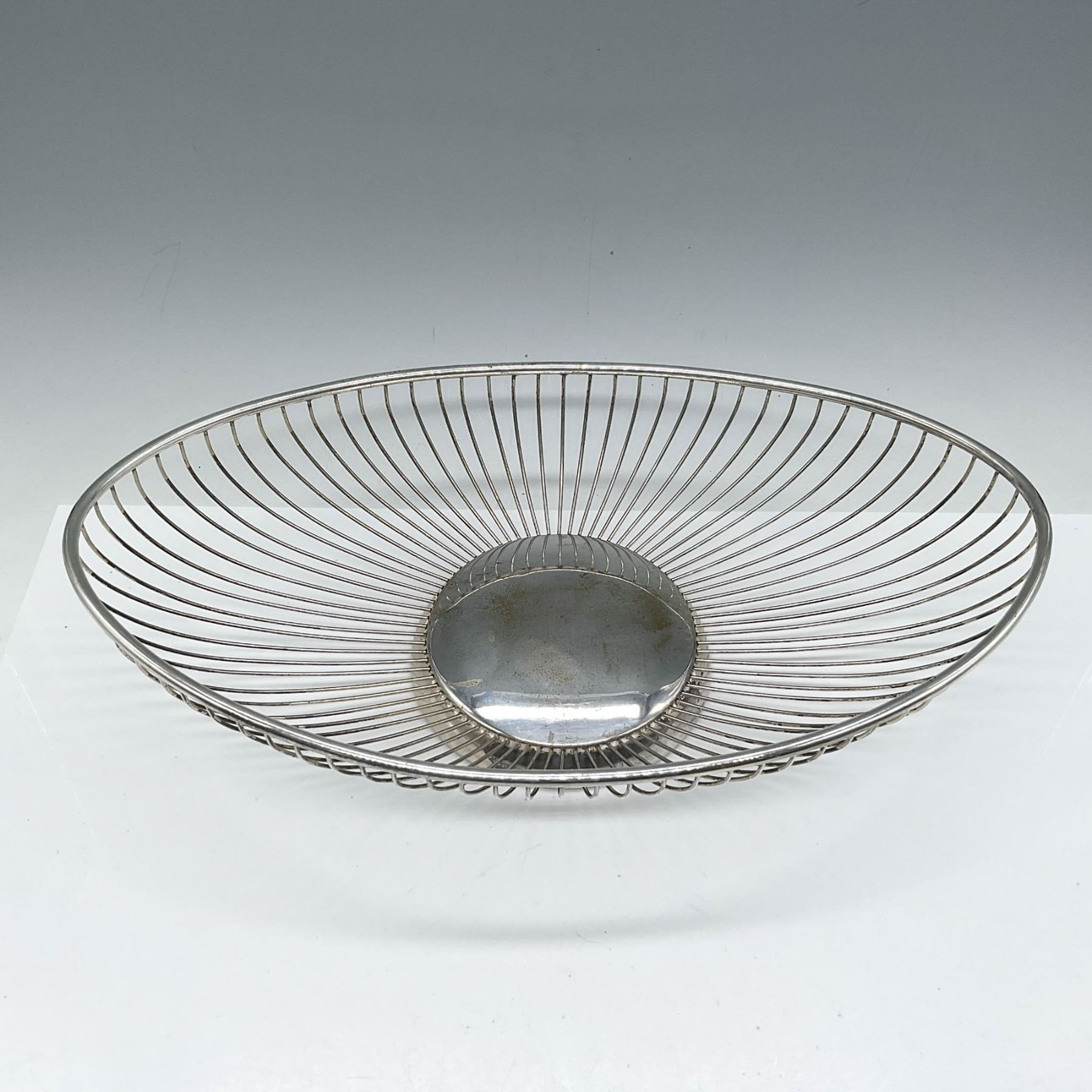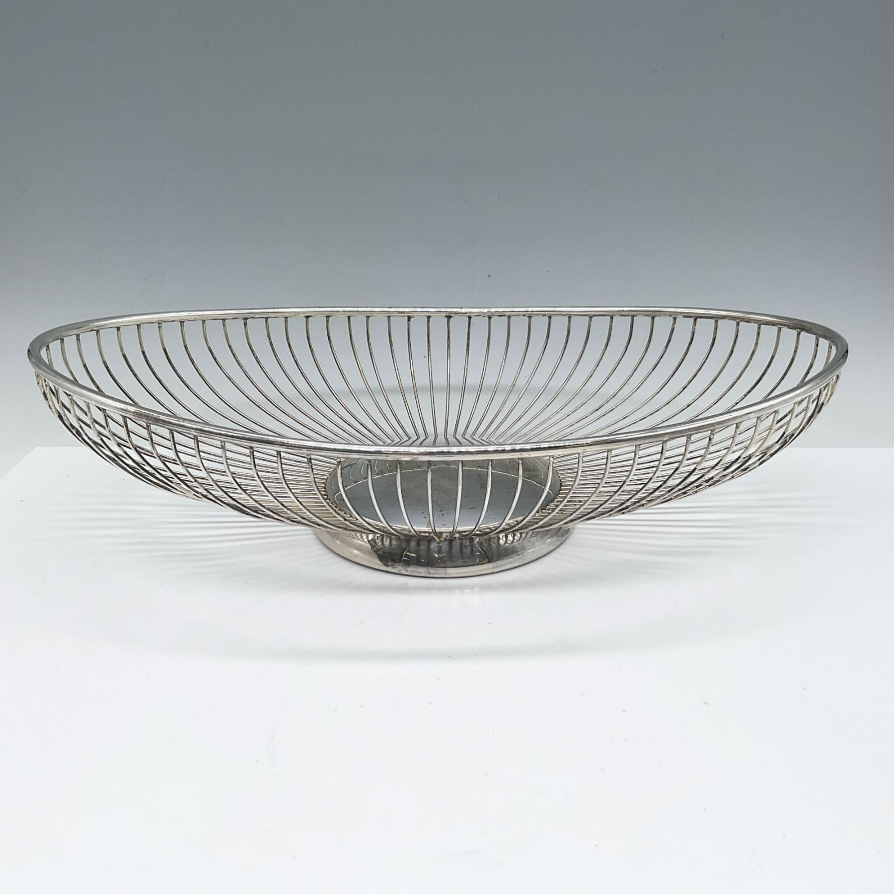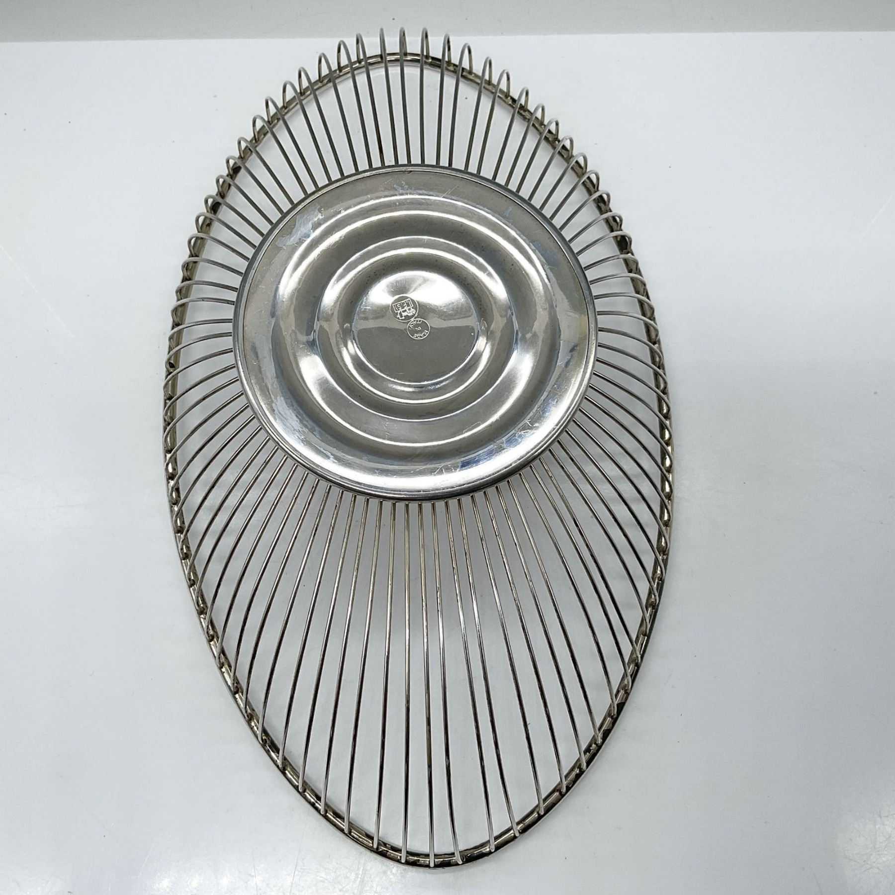 Oval wire designed basket with footed base. Made in Italy impressed mark.