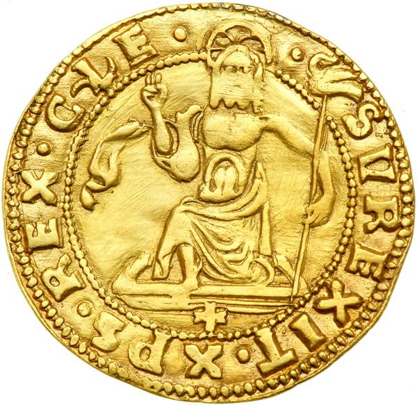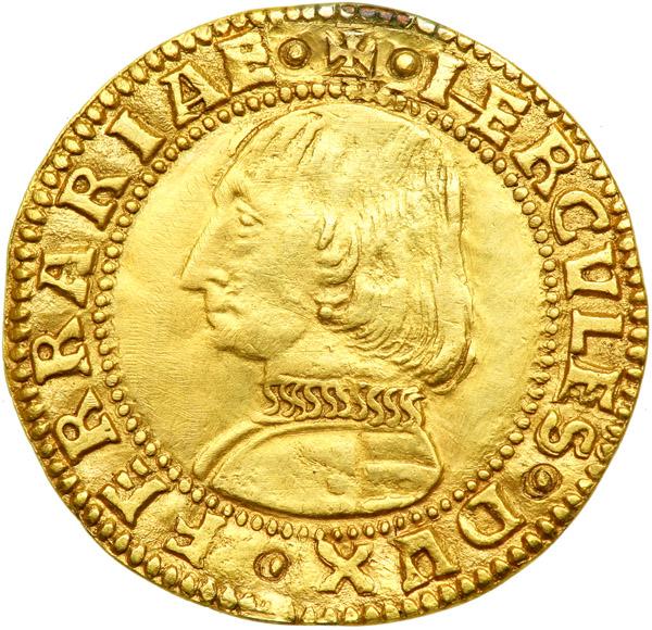Italian States - Ferrara. Ducat, ND. Fr-265; CNI-XXX,8. Ercole I D'Este, 1471-1475. Bust left. Reverse: Christ. NGC graded Extremely Fine, Details (Mount Removed, Tooled).