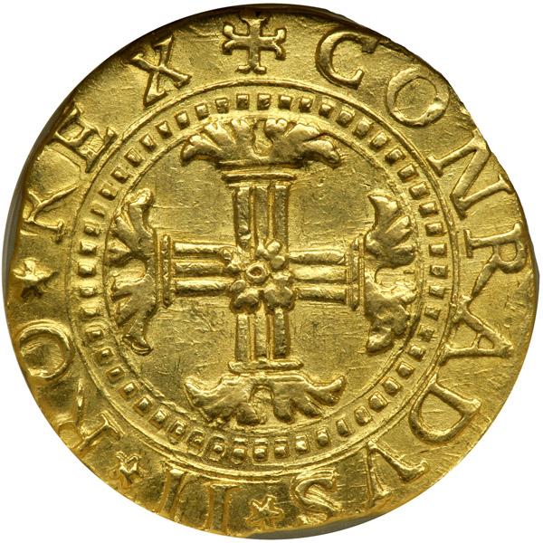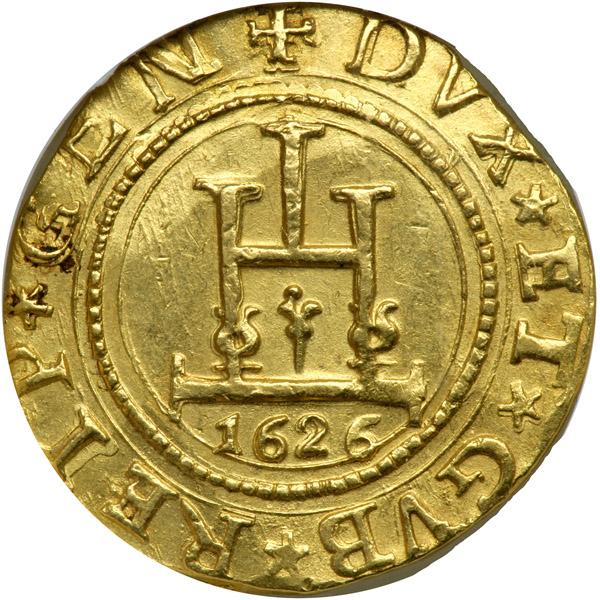 Italian States - Genoa. 2 Doppie, 1626. Fr-418; KM-28 (this date not listed). Castle. Reverse: Cross. Catalog value in Friedberg and KM both $5,000 plus in EF. This mint state example truly Rare this nice. NGC graded MS-62.