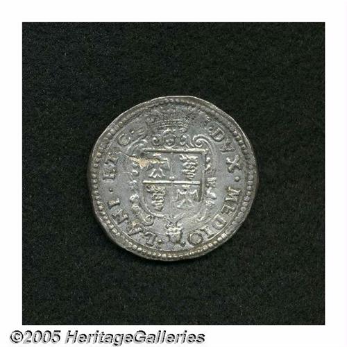 <B>Milan. Philip II of Spain Ducatone 1582, </B></I>Davenport 8309, bold VF, lightly cleaned with some minor patination remaining, planchet flaw through the coin over the 82 of the date. Despite the impairments, this is a very collectable example for this era. From the Dr. Kurt Peters Collection.
