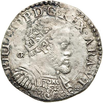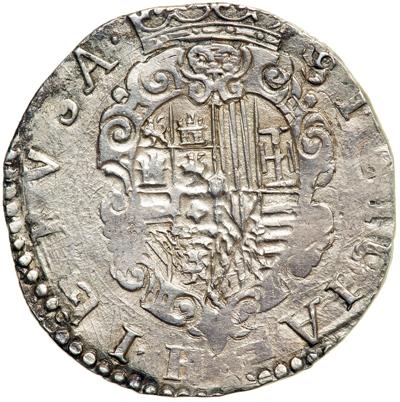 Italian States - Naples. Mezzo Ducato, ND. CNI XX, Pl.V,1. Philip II as King of Spain and Naples, 1556-1598. Radiate and cuirassed bust right of Philip II. Reverse: Crowned arms. Minor scratches and surface corrosion. Sharp detail. About Extremely Fine.