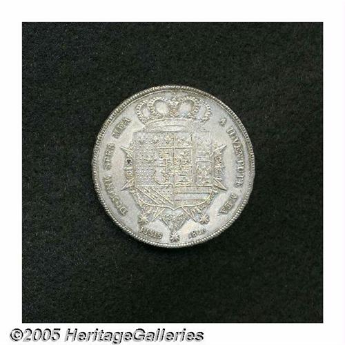 <B>Tuscany. Charles Louis with Louisa Francescone 1806, </B></I>KM-C50.2, XF, cleaned at one time and now nicely toned, die cud at 3 o'clock on the obverse. From the Dr. Kurt Peters Collection.