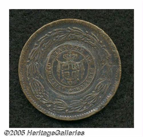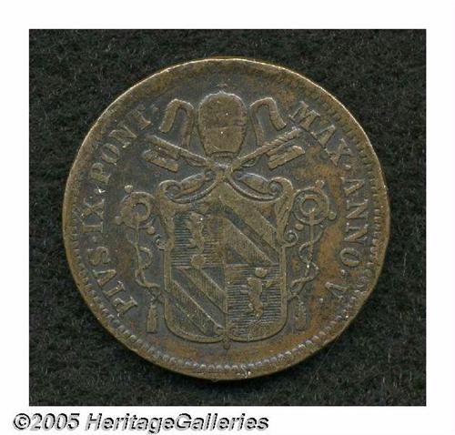 <B>Tuscany. TRIAL STRIKE Centesimo (1859), </B></I>this intriguing coin is a test strike of the obverse die of the Tuscany Centesimo (1859) introduced at the beginning of the 2nd Provisional Government, on a Papal States Baiocco of 1850/1. Presumably unique, the Centesimo die impression is VF and the host coin is nice Fine. A prize for the specialist collector!