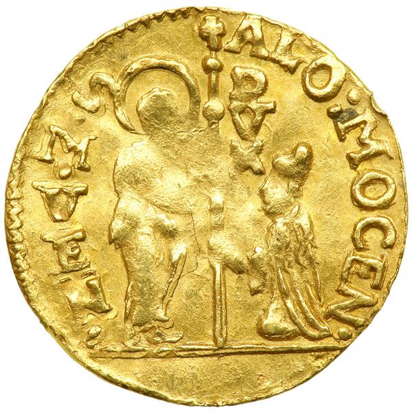 Italian States - Venice. ¼ Zecchino, ND. Fr-1423. Alvise Mocenigo IV, 1763-1778. Doge kneeling before St. Mark. Reverse: Christ standing within stars. NGC graded AU-55.