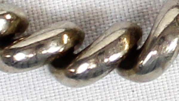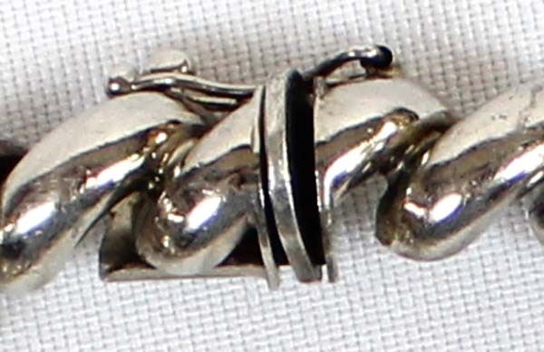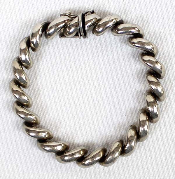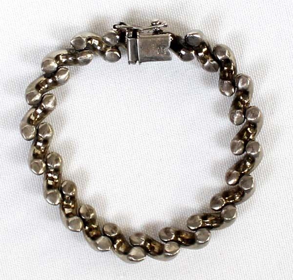 Italian Sterling Silver Bracelet, measures 7.5''L end to end x .25''W, marked Italy .925, total gram wt. of 22.4