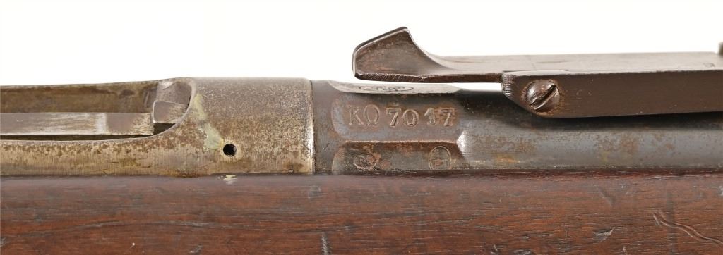 SN K07017. 33.5" barrel, decent bore. 10.4mm caliber. Working action. Wood is solid with scuffs and dings. Antique.
