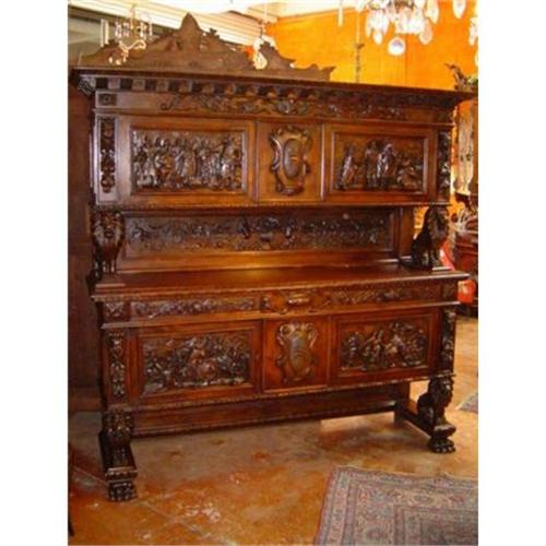 Renaissance style hand carved Tuscan buffet with full relief scenes from "the crusades", carved out from solid walnut ca 1870. Fantastic detail and amazing quality.