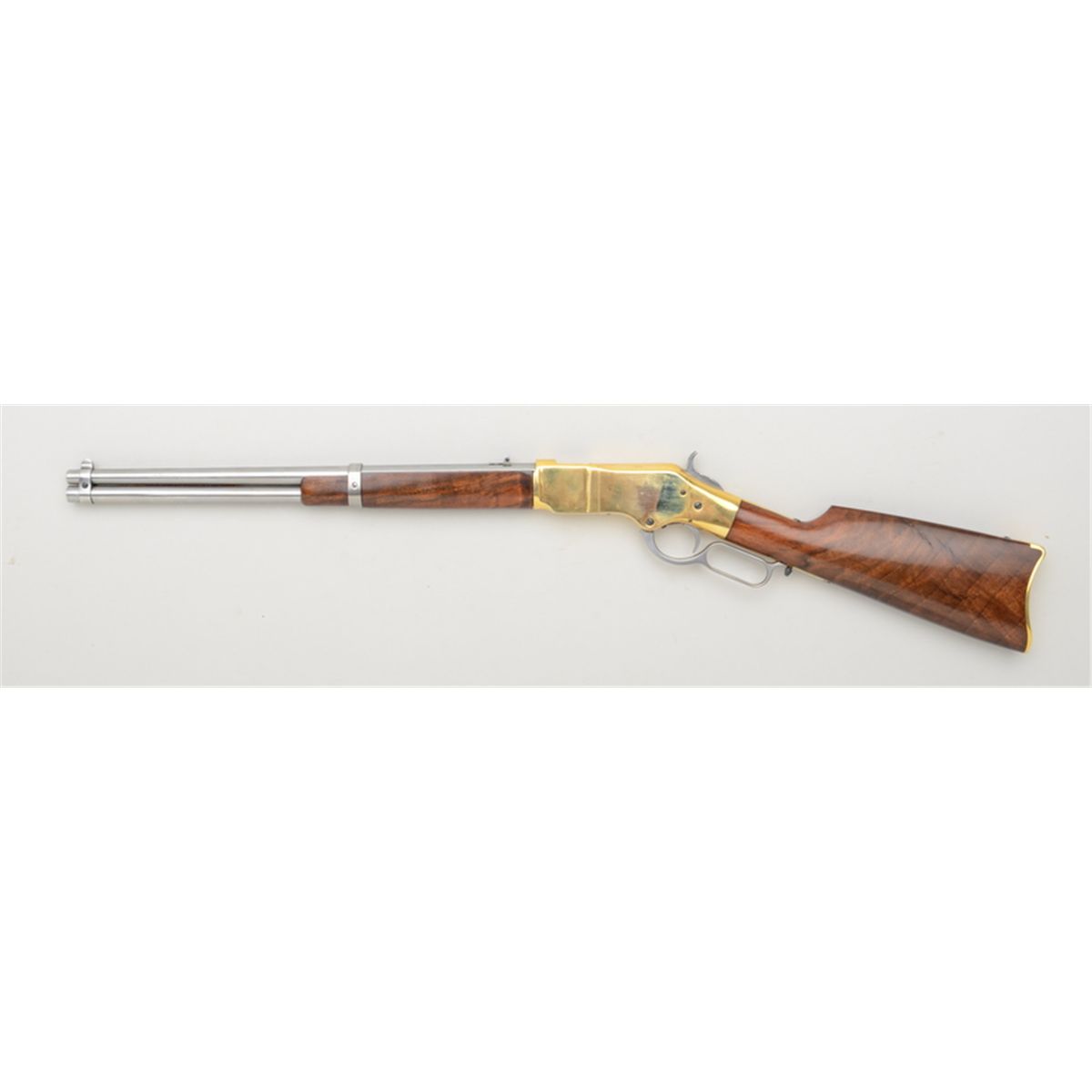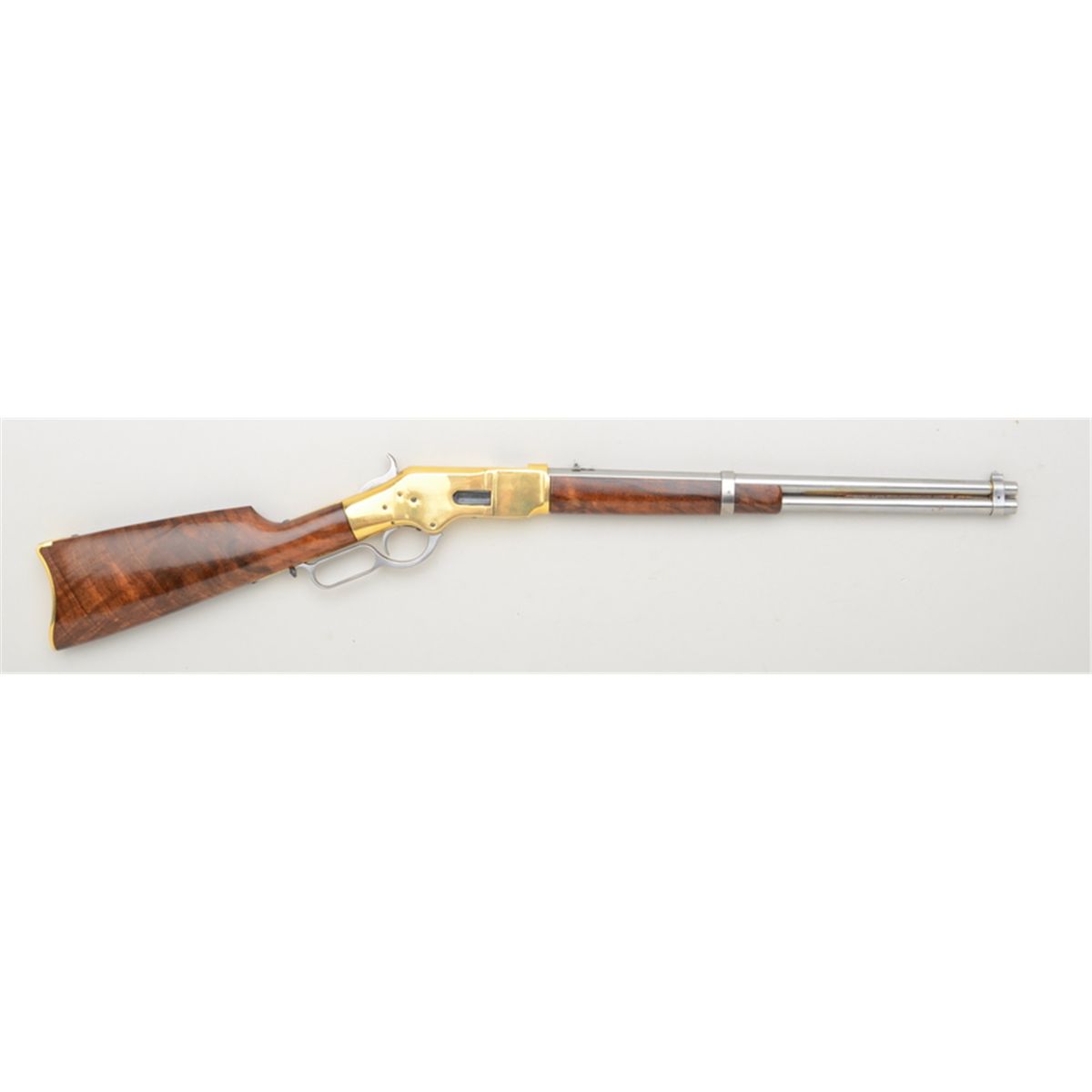 Italian Uberti miniature of a Winchester Model 1866 lever action rifle, #65 in overall excellent condition showing little handling; brass frame deluxe wood stocks, fine action. Est.: $700-$1,400.