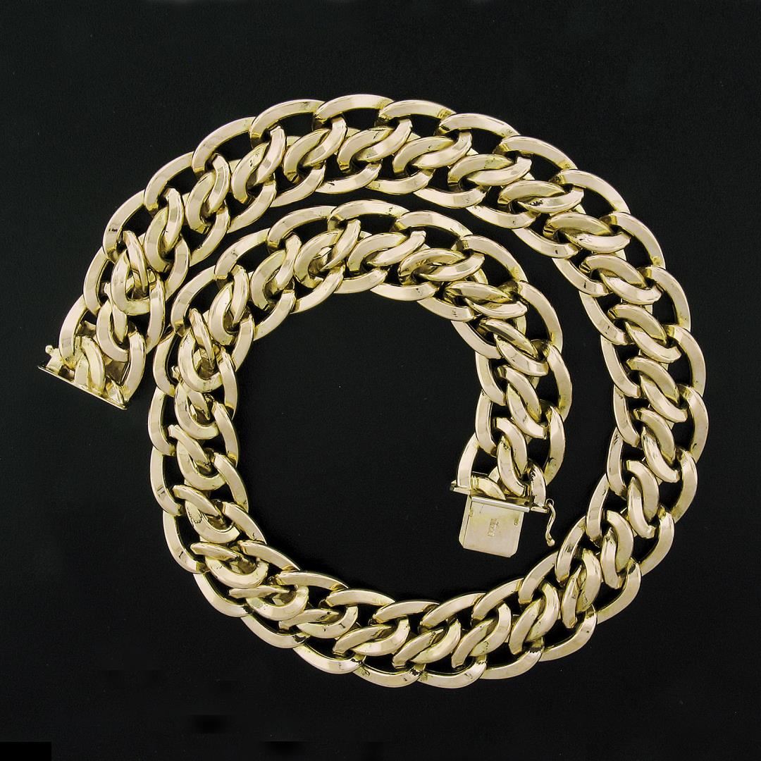 An italian solid 14k yellow gold statement necklace by UNOAERRE. It weighs a total of 57.41 grams, measures 17.3mm wide, and measures 17 inches in length.