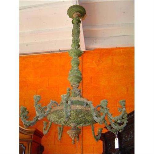 Venetian renaissance style chandelier, brass decoration and pewter, ca 1840.