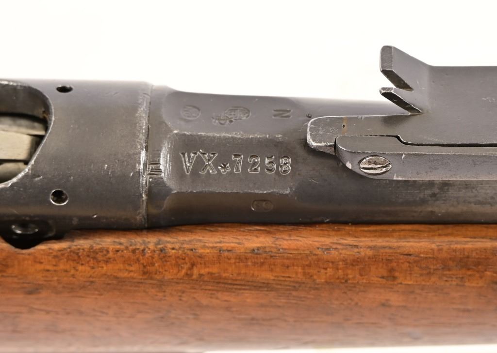 Serial VX7258. Military rife, marked on both sides of butt stock, 33 3/4" barrel. Working action. Antique.