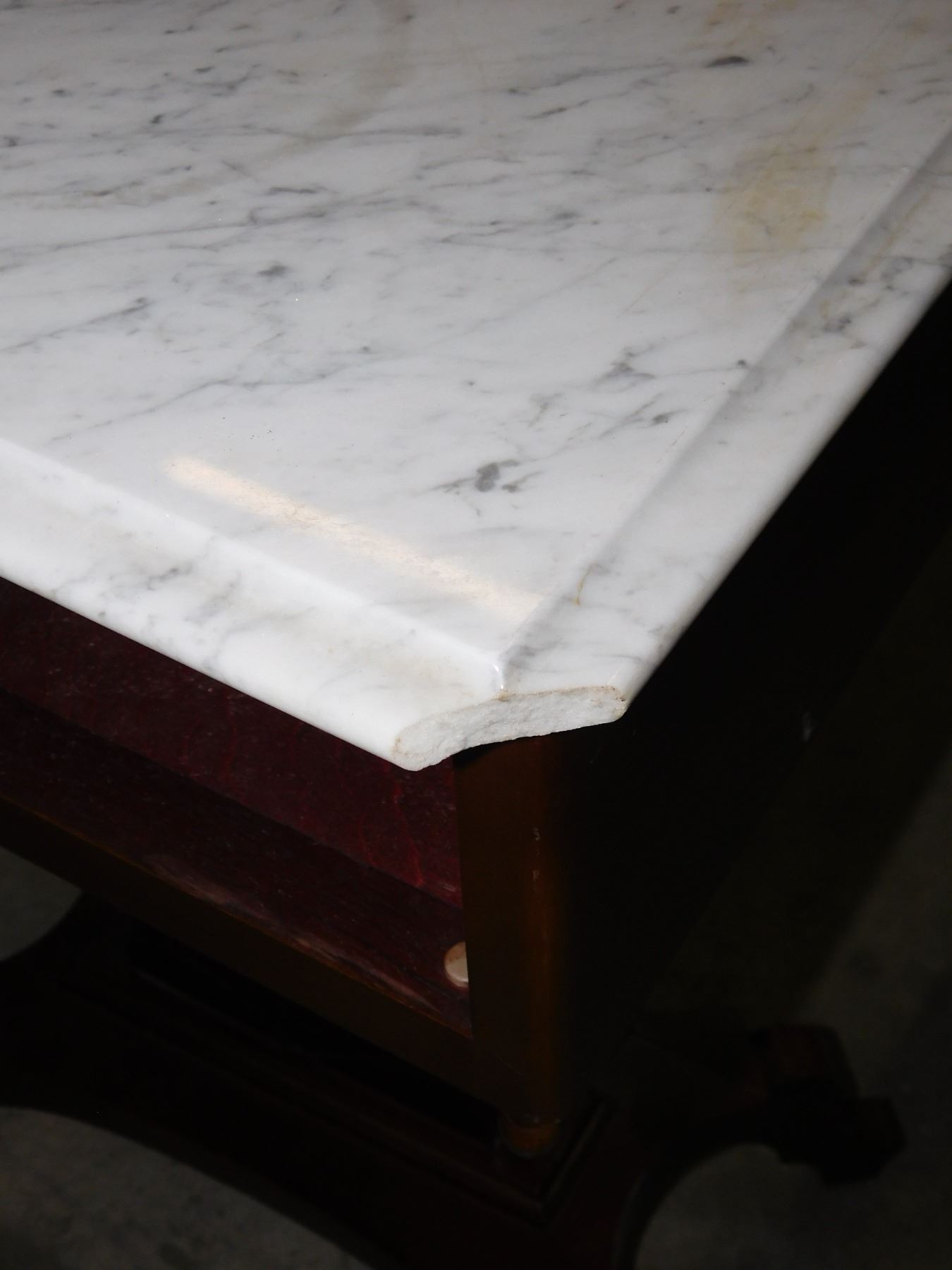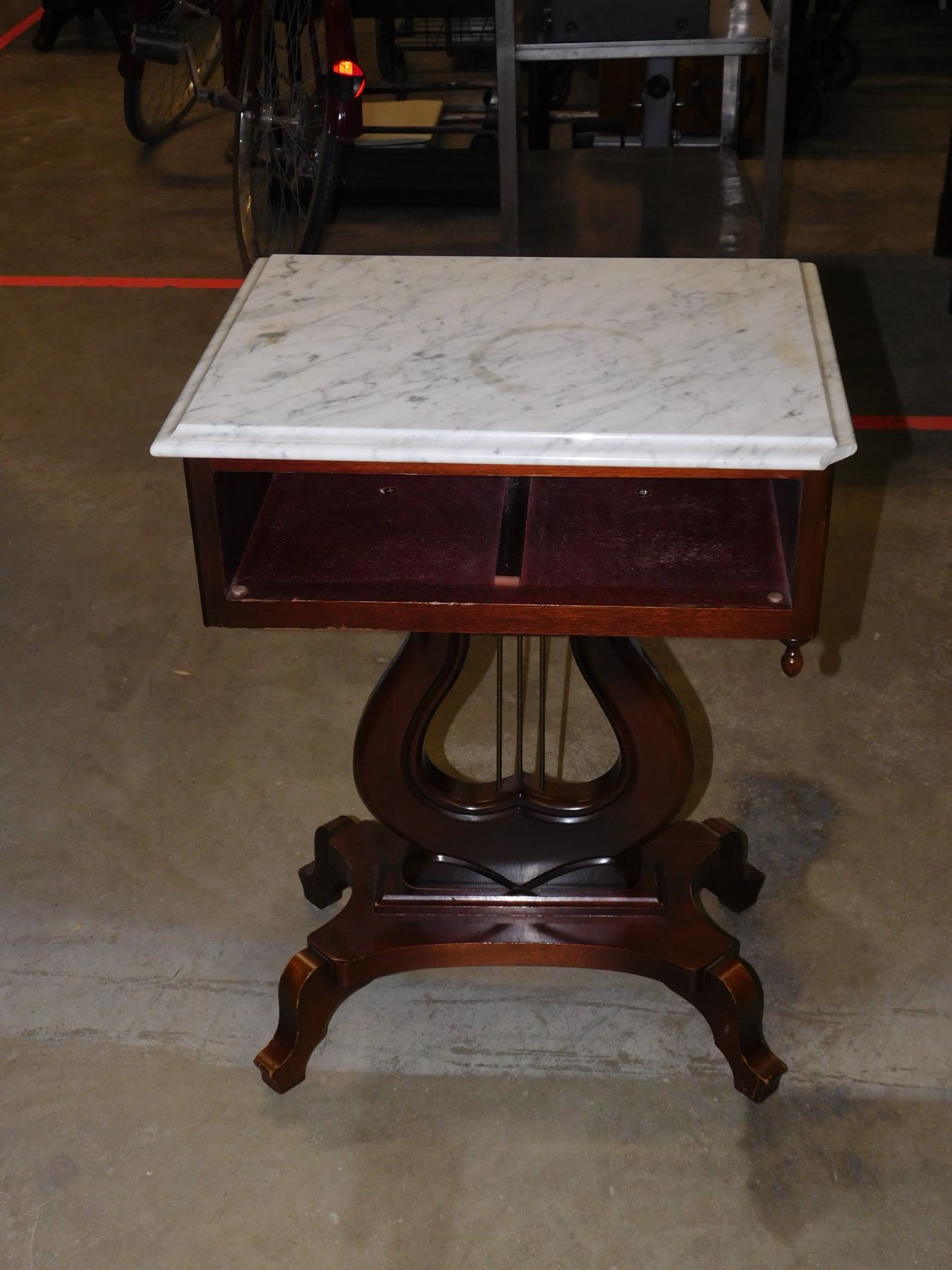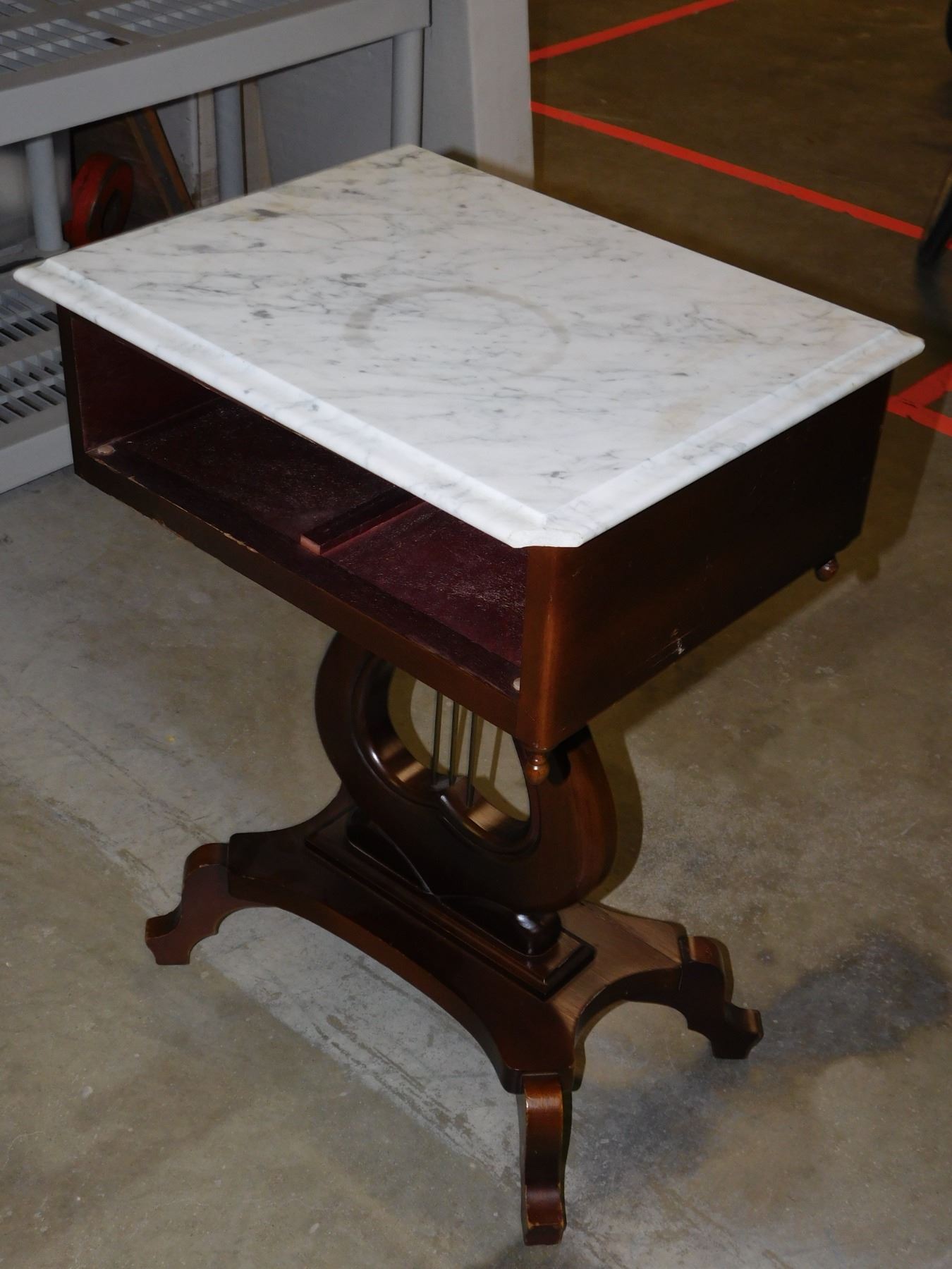26" x 19" x 16". missing drawer and crack on edge