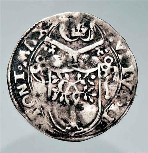 Italian XVI - XVIII Centuries - Ag - Giulio II (1503-1513) - Giulio - Zecca: Roma - Diritto: stemma sormontato dalle chiavi decussate e dalla tiara - Rovescio: San Pietro a destra e San Paolo a sinistra stanti di fronte - gr. 2,51 -