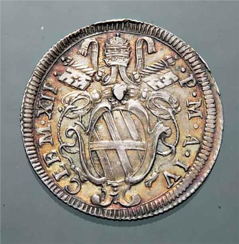 Italian XVI - XVIII Centuries - Ag - Clemente XII (1730-1740) - Giulio anno IV - Zecca: Roma - Diritto: stemma sormontato dalle chiavi decussate e dalla tiara - Rovescio: motto entro cartella sagomata chiusa in baso da un'ormetta cardinalizia - gr. 2,80 - Di buona qualità e con patina da collezione