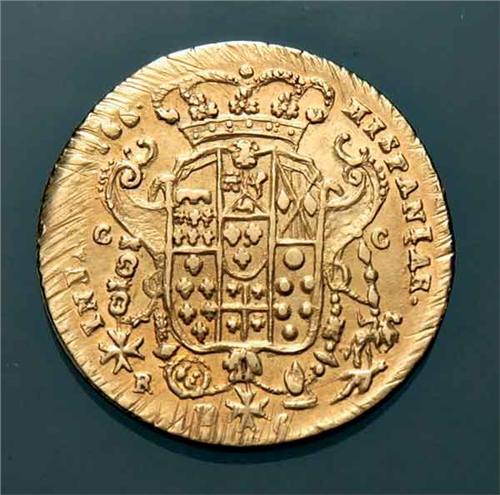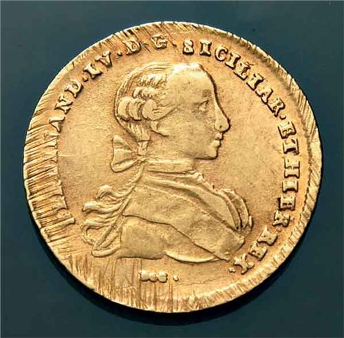 Italian XVI - XVIII Centuries - Au - Ferdinando IV di Borbone (1759-1825) - 6 Ducati 1766 Zecca: Napoli - Diritto: effigie giovanile del Re a destra - Rovescio: stemma coronato entro cartella ornata e circondata di decorazioni - Graffi di "aggiustamento" sui lati da esaminare con attenzione