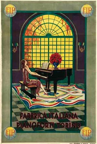 Title: FIP, FABBRICA ITALIANA PIANOFORTI TORINO - Author: TIESSE - Litograph - 1930 ca - 99x68 - Quality: B+ - Scotch-tape on paper on the back