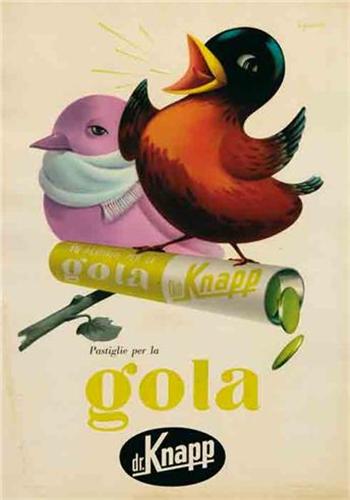 Title: PASTIGLIE PER LA GOLA DR. KNAPP - Author: LIGASACCHI - Offset - 1953 - 68x48 - Quality: B+ - Backed on linen. Originally on clear plastic
