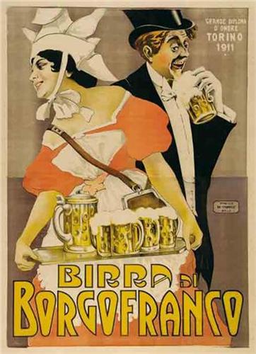 Title: BIRRA DI BORGOFRANCO - Author: ANONYMOUS - Litograph - 1911 - 134x97 - Quality: A- - Backed on linen