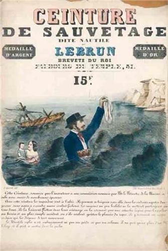 Title: CEINTURE DE SAUVETAGE DITE NAUTILE DE LEBRUN - Author: ANONYMOUS - Litograph - 1890 ca - 43,5x30 - Quality: C - Framed. Lacks along borders
