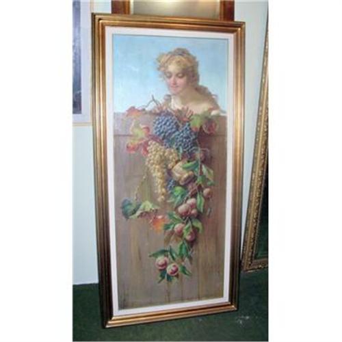 </font></strong>Beautiful allegory to the Vintage , grapes , original oil on canvas by M. Mautone ,Italy signed and dated 1911.
