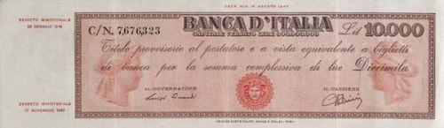 Italian banknotes - Titolo Provvisorio da 10.000 Lire D.M. 28.1.1948 - Pieghe verticali ma in generale buona qualità -