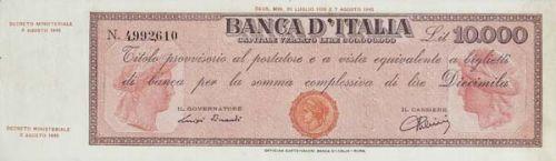Italian banknotes - Titolo provvisorio da 10.000 Lire D.M. 4/8/1945 -
