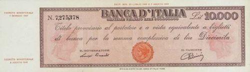 Italian banknotes - Titolo provvisorio da 10.000 Lire D.M. 4/1/1947 -
