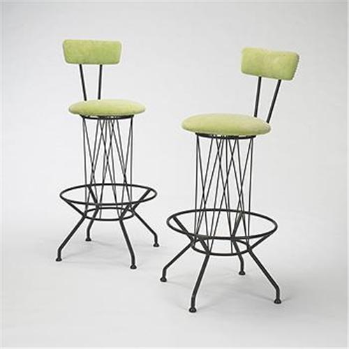 Italian barstools, pair c. 1960 enameled metal, upholstery 21 w x 21 d x 41.5 h inches