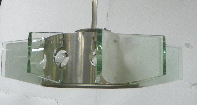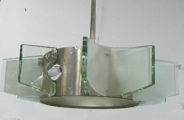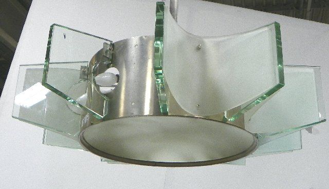 Clear & frosted, two glass shades cracked. With appraisal by Alan Moss, New York, NY, originally price $10,000. Approx. 32" across x 32" H. Please read our terms of sale.