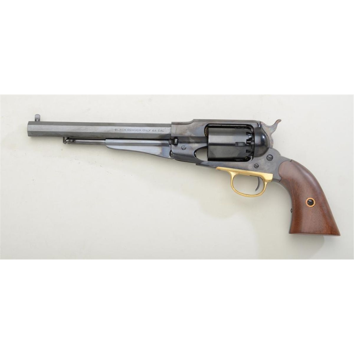Italian copy of a Remington Model 1858 percussion revolver, .44 cal. black powder only, 8” octagon barrel, black finish, brass trigger guard, wood grips, #144997. This gun is in overall like new condition showinglittle handling or use. Est.: $150-$300.
