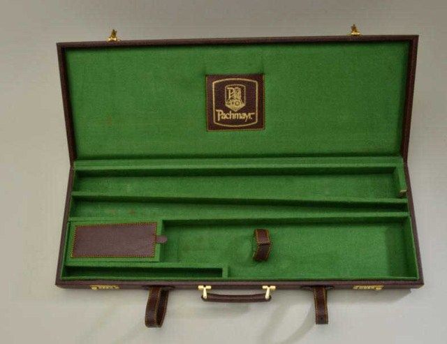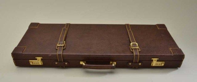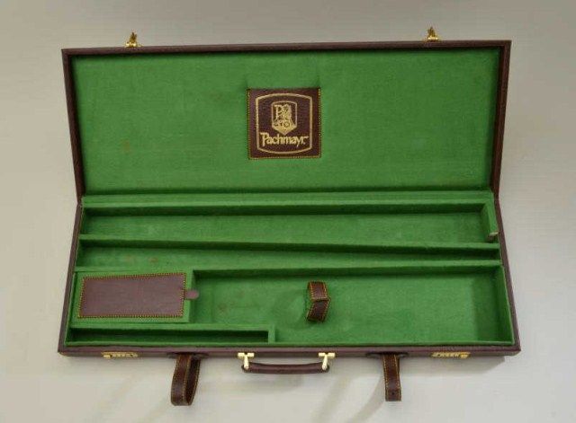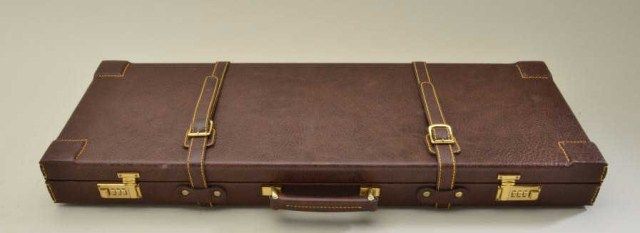 Italian leather gun case with Pachmayr label for 2 barrel side by side 30” barrels or less, adaptable to most SXS fine to near excellent condition. Est.;$100-$300.