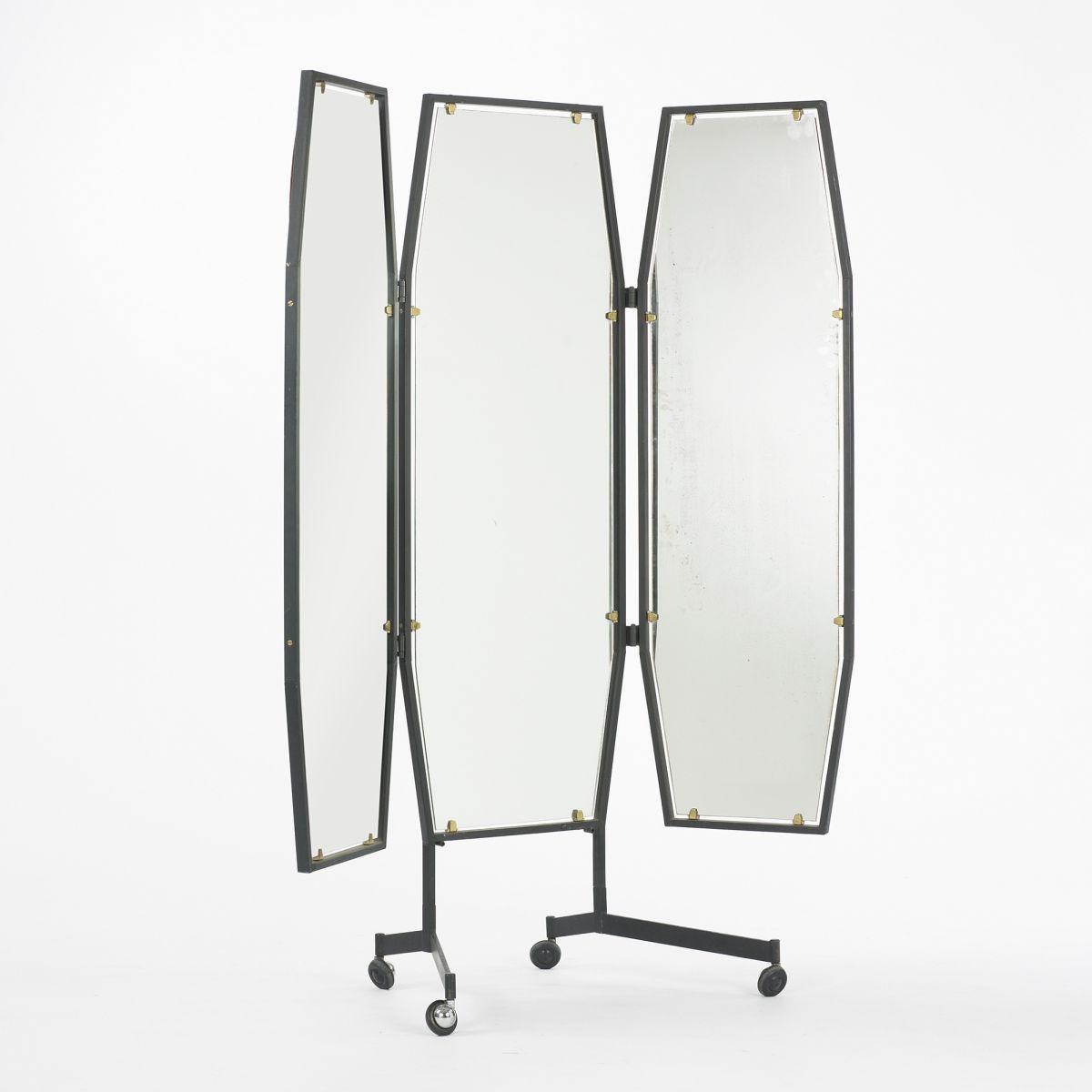 enameled steel, mirrored glass, brass