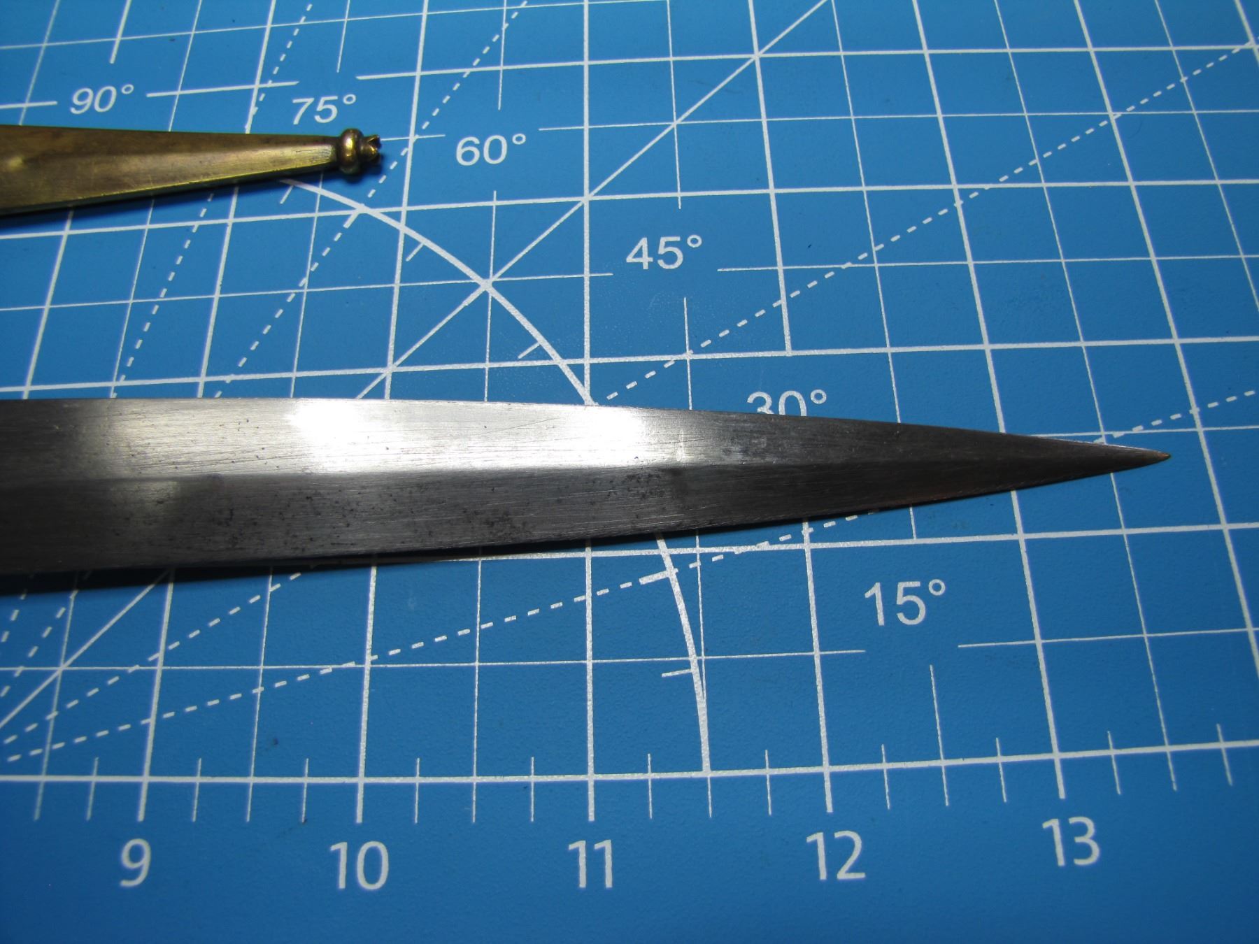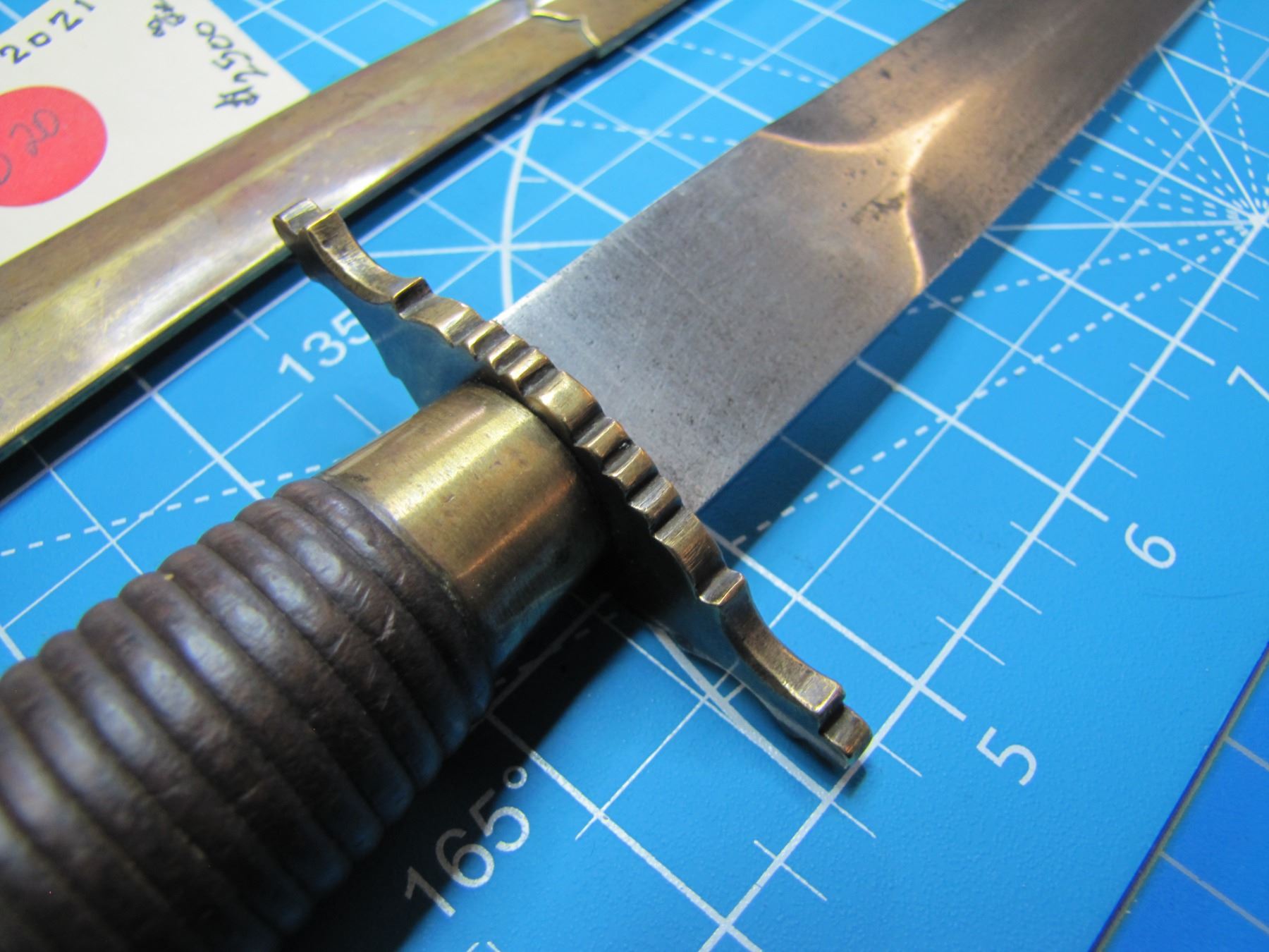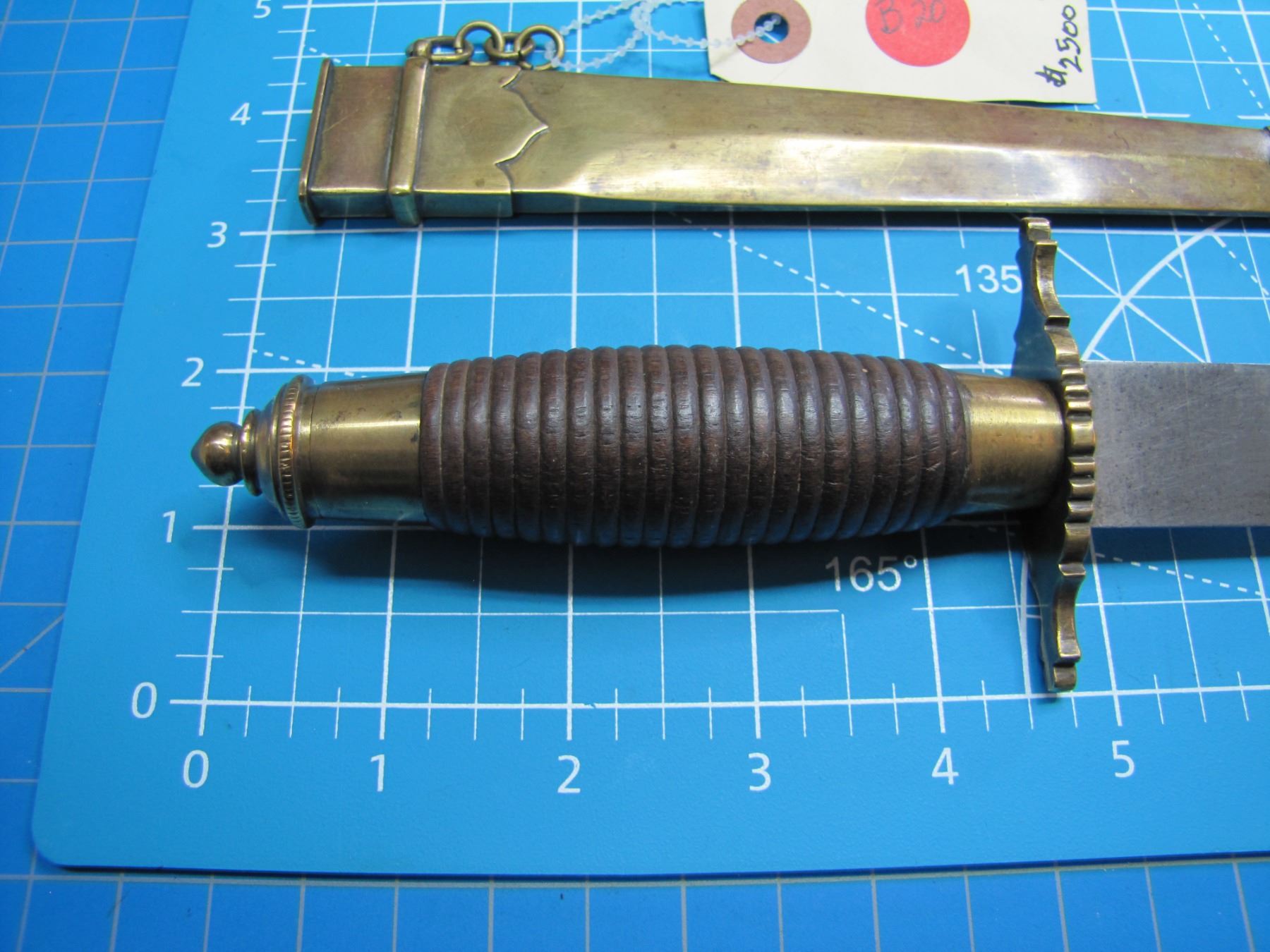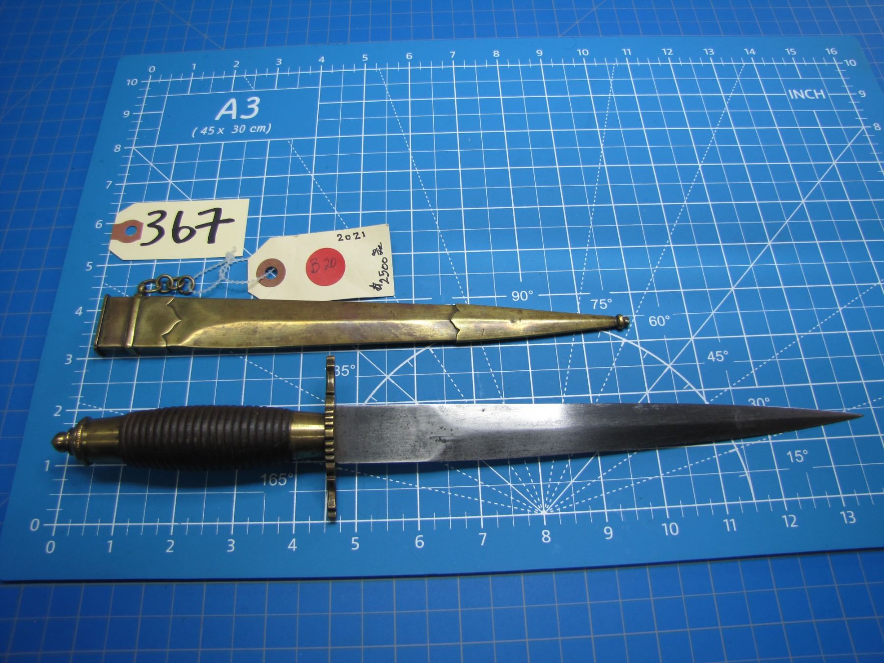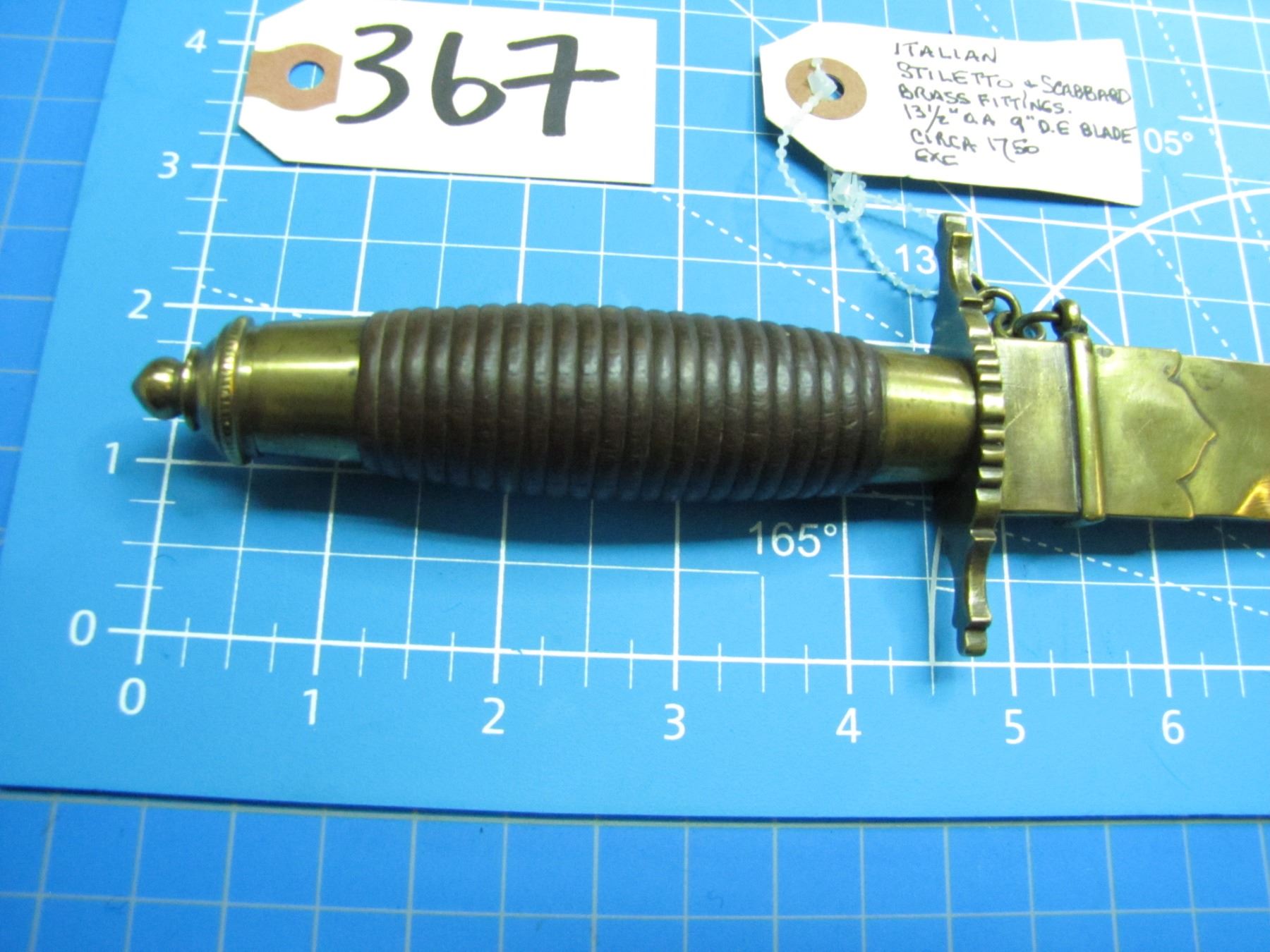 Italian stiletto with 9" double edged blade with brass fittings and sheath, thought to be circa 1750 … CONSIGNOR ID # …B20