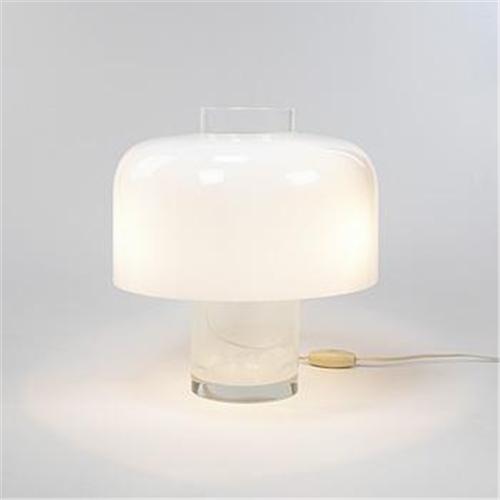 Italian table lamp Italy, c. 1970 glass, stainless steel 14 dia x 15.5 h inches
