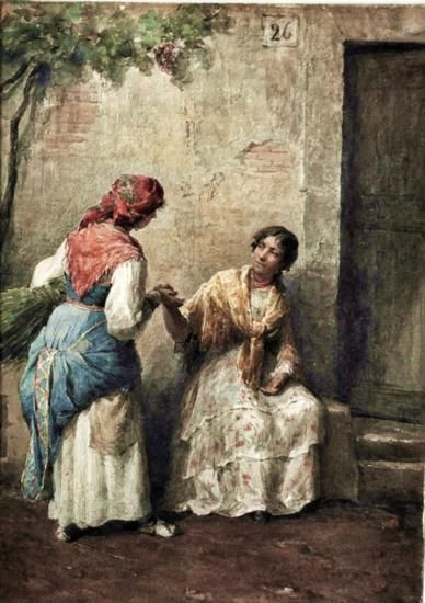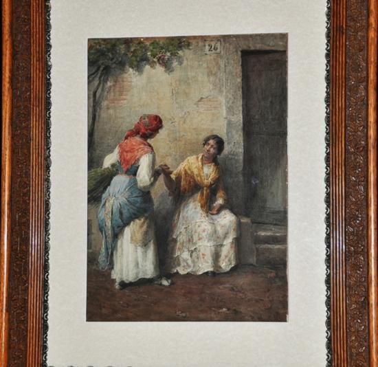 Normal 0 false false false MicrosoftInternetExplorer4 Italian watercolor,signed R. Maghelli, 15 1/4'' x 10 3/4'' image size." Fortune teller". In19th century carved and well decorated wooden frame. Maghelli is listed in Dizionario Illustrato deiPittori, Disegnatori e Incisori Italiani Moderni e Contemporanei byCommanducci. From prominent collector. /* Style Definitions */ table.MsoNormalTable{mso-style-name:"Table Normal";mso-tstyle-rowband-size:0;mso-tstyle-colband-size:0;mso-style-noshow:yes;mso-style-parent:"";mso-padding-alt:0in 5.4pt 0in 5.4pt;mso-para-margin:0in;mso-para-margin-bottom:.0001pt;mso-pagination:widow-orphan;font-size:10.0pt;font-family:"Times New Roman";mso-ansi-language:#0400;mso-fareast-language:#0400;mso-bidi-language:#0400;}