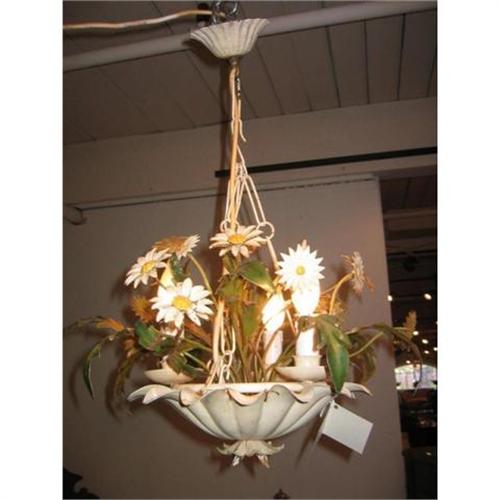 Is a cute Italian chandelier made in Italy approx 1910. Is made in metal painted with white flowers and green leaves Size: 20" W X 25"L