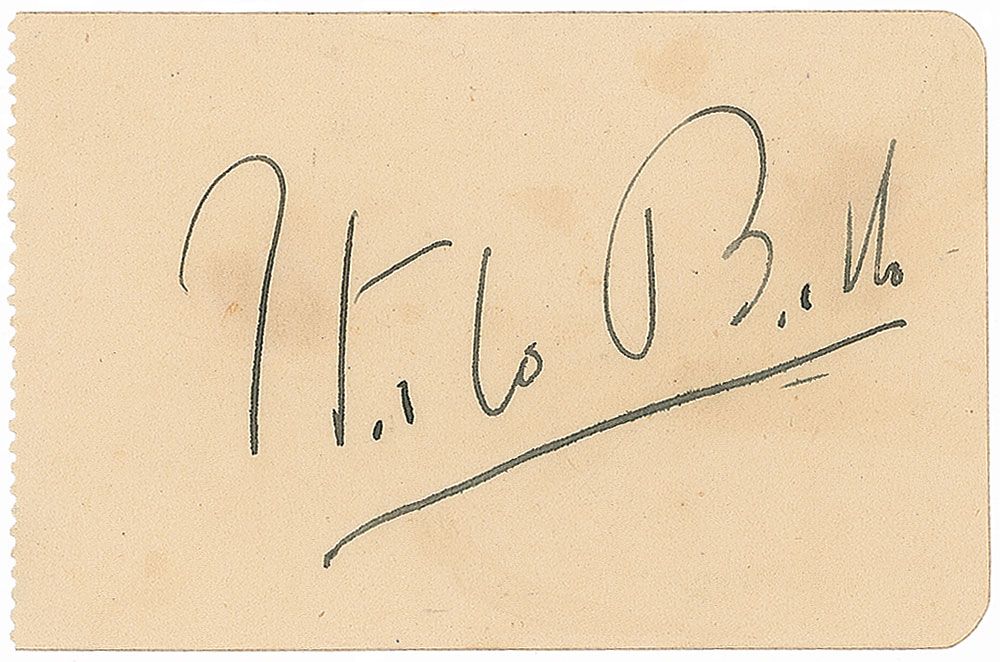 Italian Blackshirt leader who popularized aviation in Italy and was killed by friendly fire early in WWII (1896–1940). Vintage fountain pen signature, “Italo Balbo,” on an off-white 3.25 x 2.25 album page. In fine condition, with subtle scattered foxing.