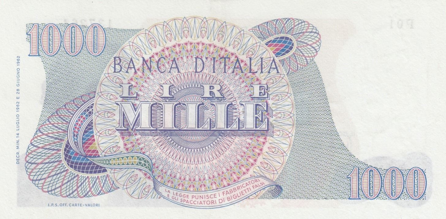 Italy, 1.000 Lire, 1962, AUNC, p96abr/serial number: P01 137264