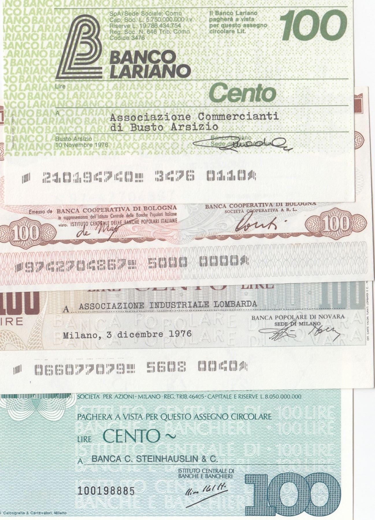Italy, 100 Lire (4), 1976/1977, UNC, (Total 4 banknotes)br/Checks instead of money in Italy