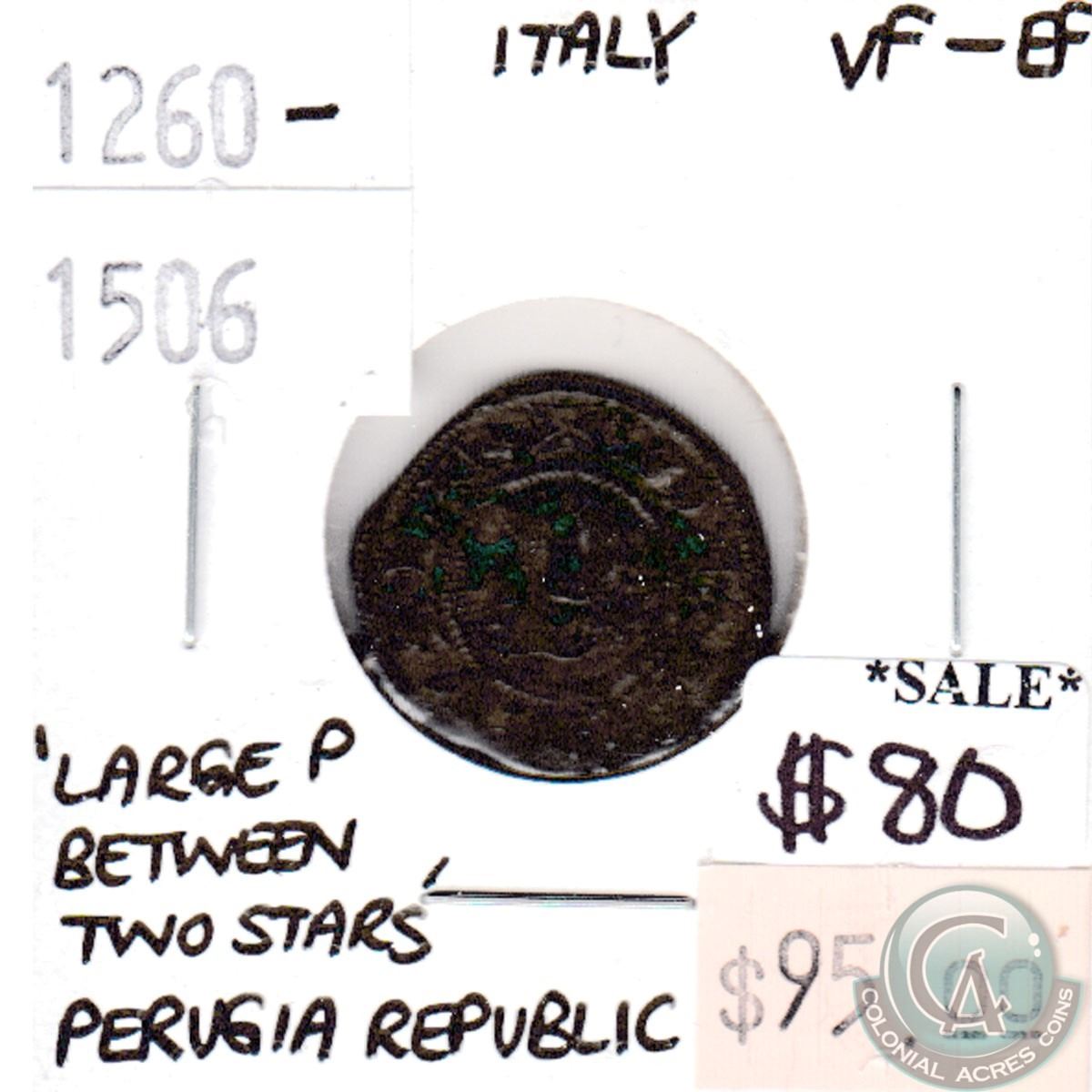 Italy 1260-1506 Perugia Republic 'Large P Between Two Stars' VF-EF