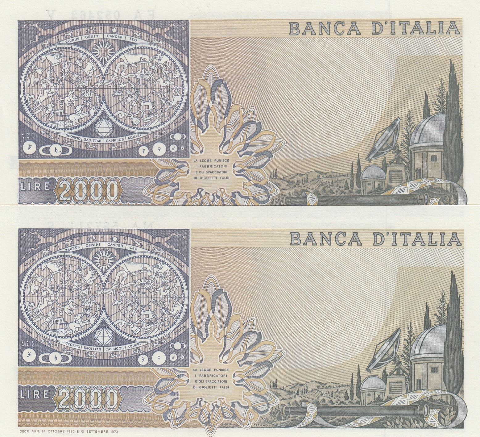Italy, 2.000 Lie, 1983, UNC, p103c, (Total 2 banknetes)br/Galileo portrait, serial numbers: EA 05246