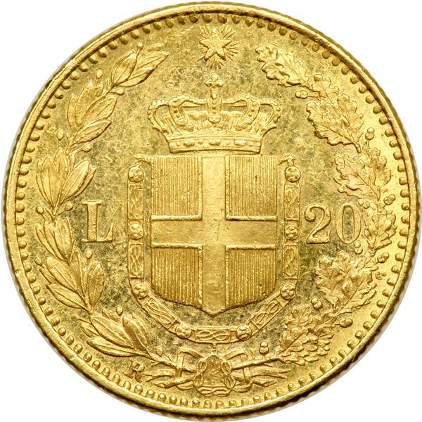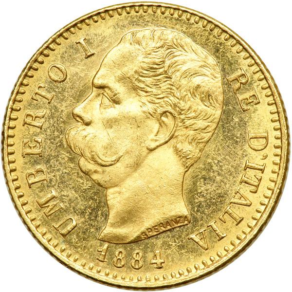 Italy. 20 Lire, 1884-R. Fr-21; KM-21; Pagani-580 (Rarity-2). Umberto I. Rare date. NGC graded MS-63.