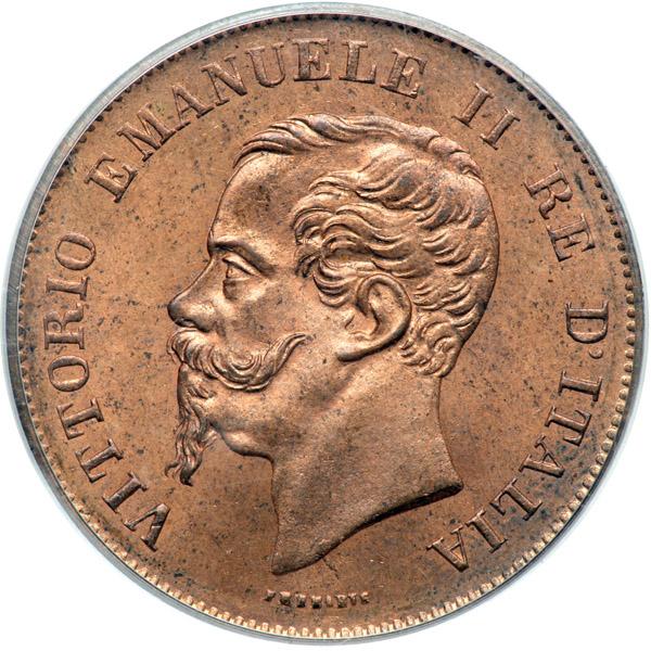 Italy. 5 Centesimi, 1861-M. Pagani-552; KM-3.2. Vittorio Emanuele II. Head left. PCGS graded MS-65 Red & Brown.