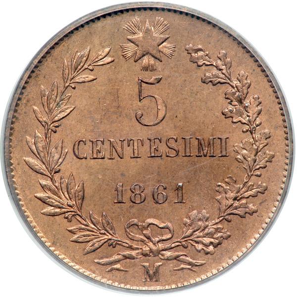 Italy. 5 Centesimi, 1861-M. PCGS MS65