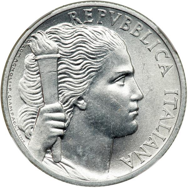 Italy. 5 Lire, 1946-R. KM-89; Pagani-2351. Rare date. NGC graded MS-64.
