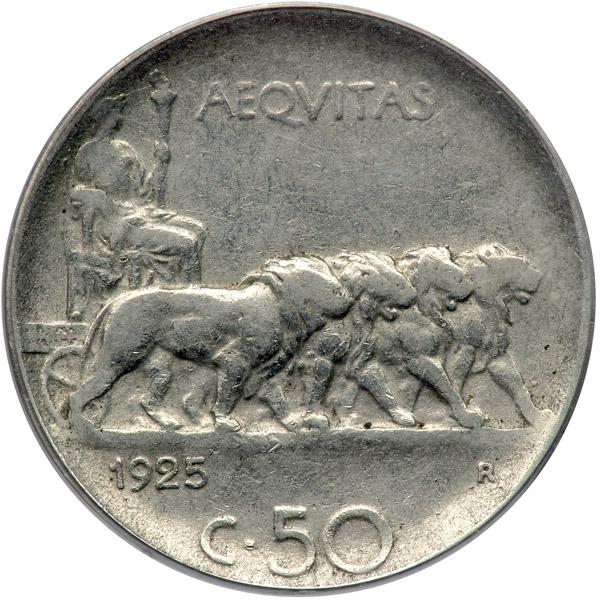 Italy. 50 Centesimi, 1925-R. PCGS AU50