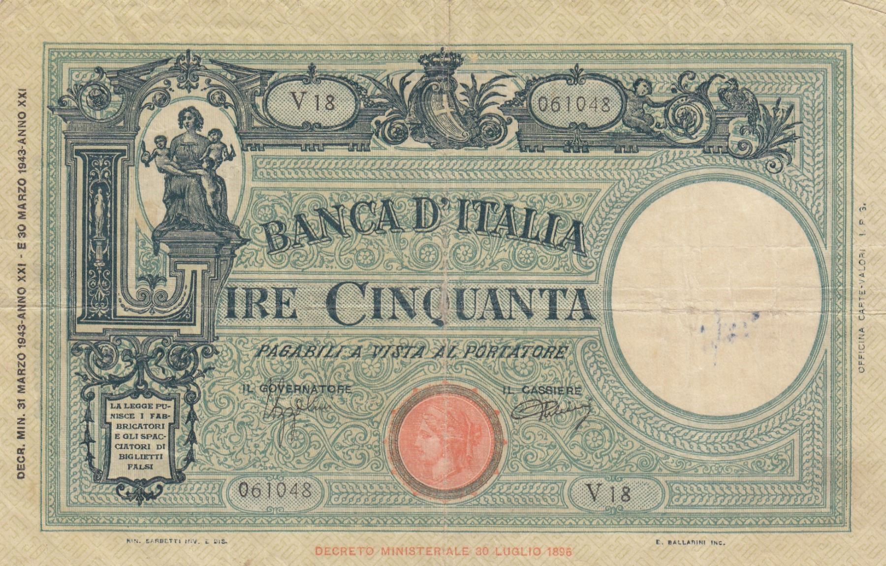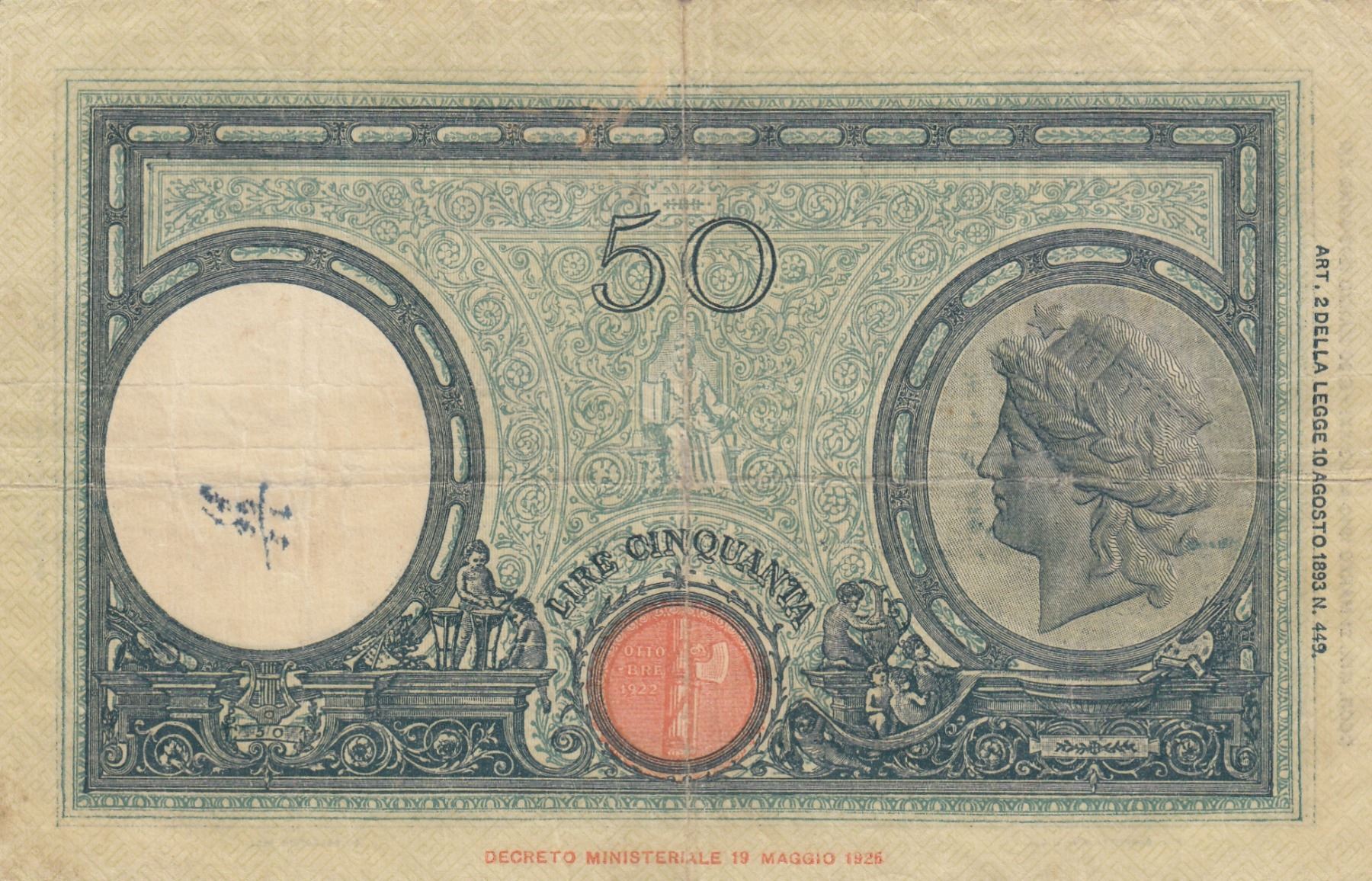 Italy, 50 Lire, 1926, VF, p47br/serial number: 061048/V18