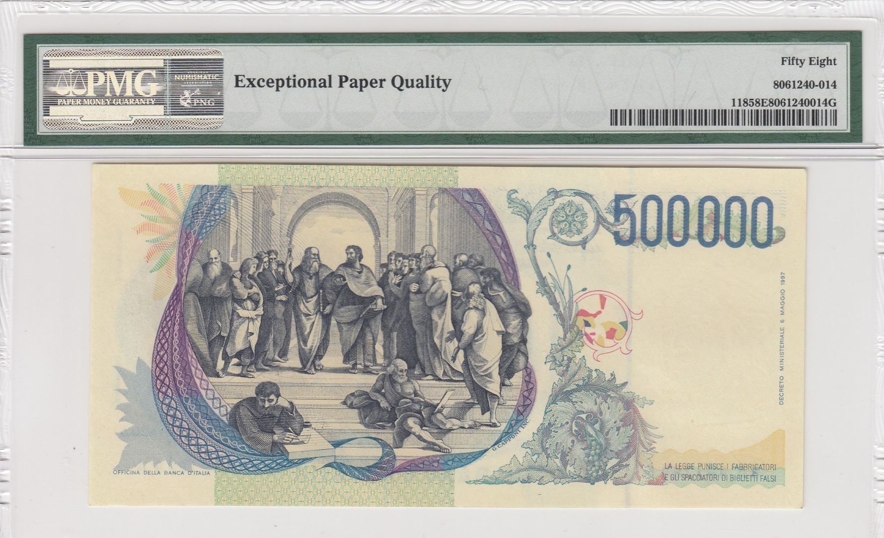 Italy, 500.000 Lire, 1997, AUNC, p118br/PMG 58 EPQ, serial number: BA 391389A