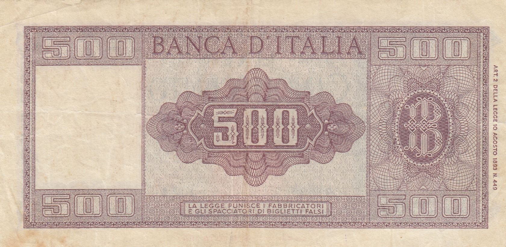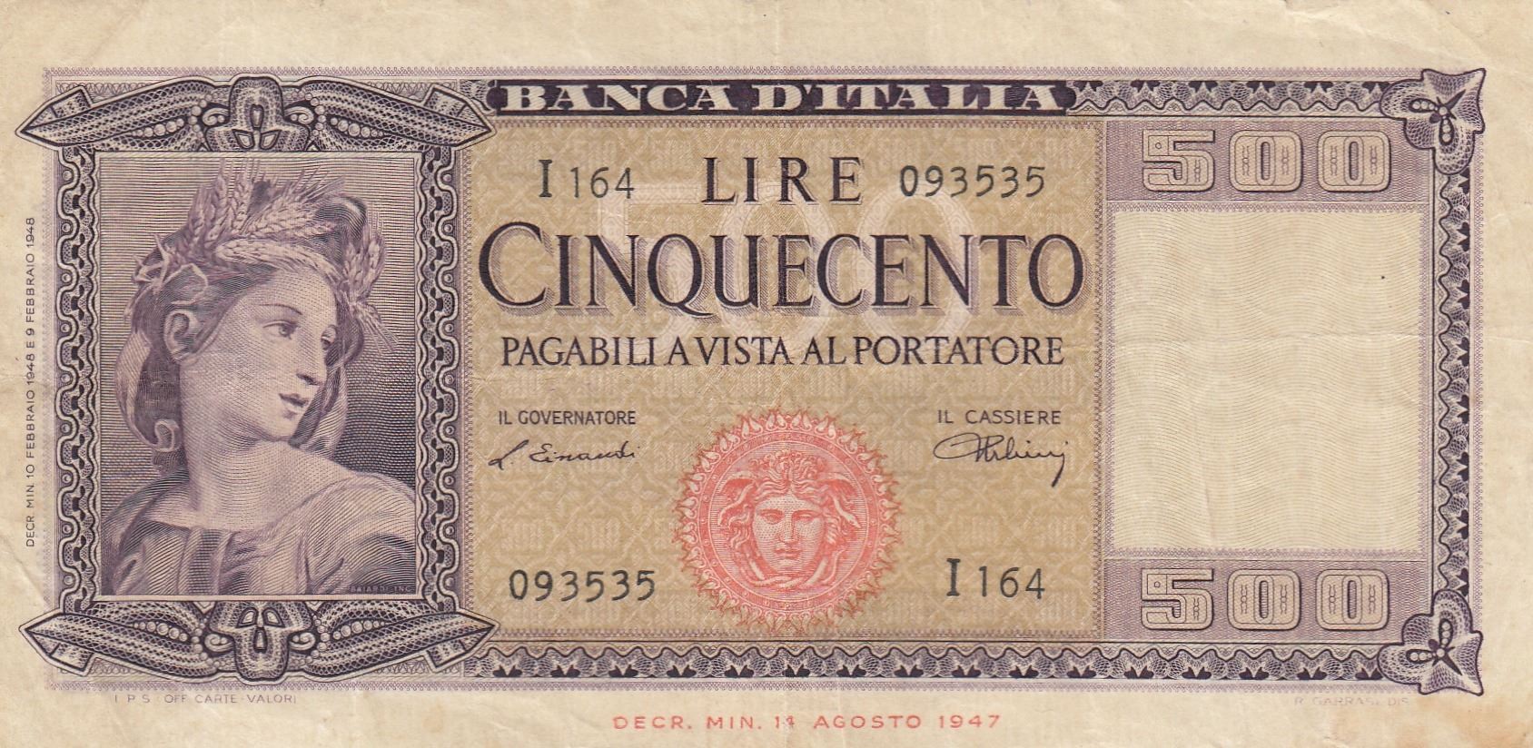 Italy, 500 Lire, 1947, VF, p80br/serial number: 093535/I 164